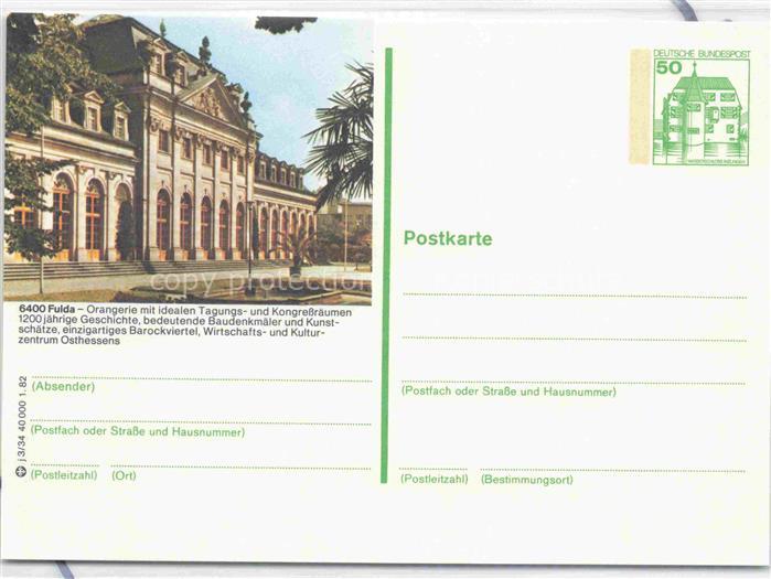 74123195 FULDA Hessen Orangerie postalisch nicht gelaufen Ganzsache (eingedruckte Briefmarke) Erhaltung siehe scans [FriedD77] KatCode: 11110006631009