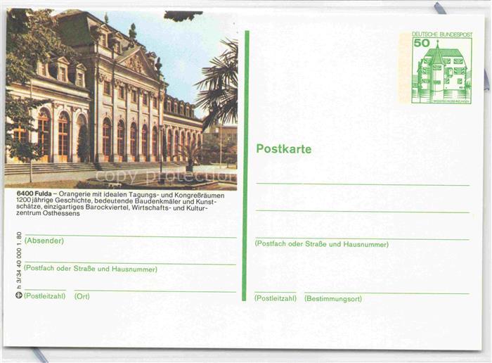 74123117 FULDA Hessen Orangerie postalisch nicht gelaufen Ganzsache (eingedruckte Briefmarke) Erhaltung siehe scans [FriedD77] KatCode: 11110006631009