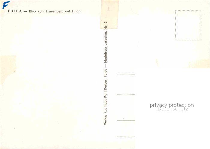 72724287 FULDA Hessen Panorama Blick vom Frauenberg postalisch nicht gelaufen Erhaltung siehe scans [FriedD77] KatCode: 11110006631009