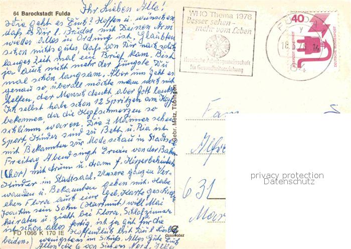 72875691 alte Postkarte FULDA Hessen Platz Kirche Schloss Stadtmauer Fachwerkhaus Geschichte postalisch gelaufen Erhaltung siehe scans [FriedD77] KatCode: 11110006631009
