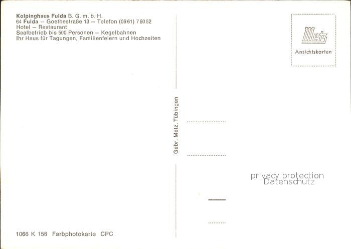 72240144 FULDA Hessen Restaurant Kolpinghaus postalisch nicht gelaufen Erhaltung siehe scans KatCode: 11110006631009