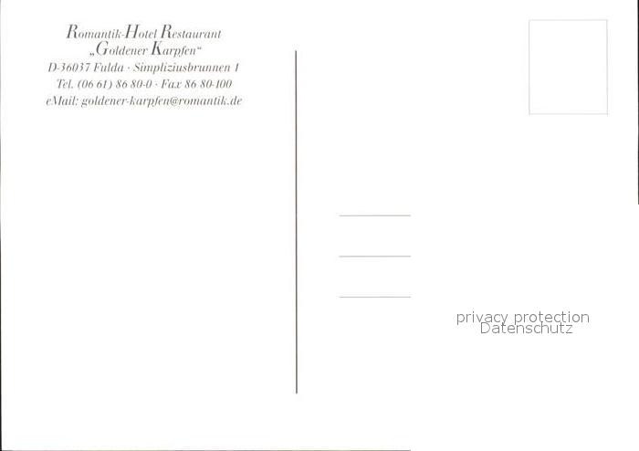 71913329 FULDA Hessen Romantik Hotel Goldener Karpfen postalisch nicht gelaufen KatCode: 11110006631009