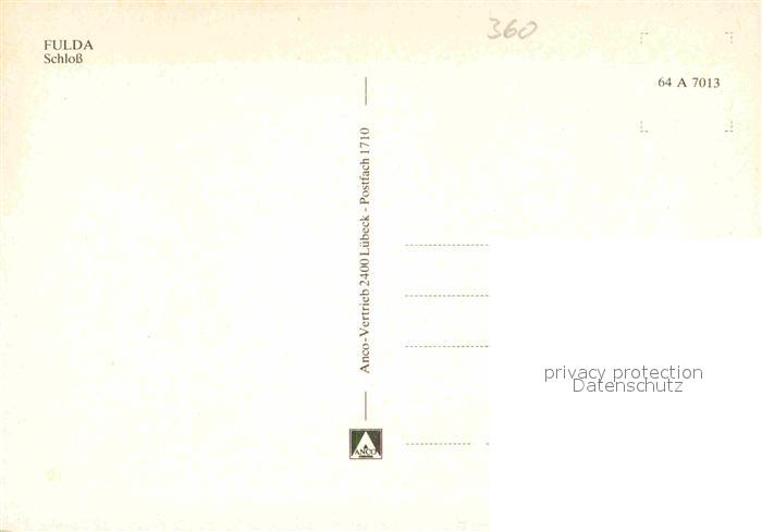 72636175 FULDA Hessen Schloss postalisch nicht gelaufen Erhaltung siehe scans [WerneD78] KatCode: 11110006631009