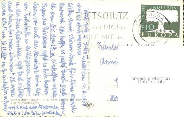 72317853 alte Postkarte FULDA Hessen Schlossblick auf Dom und Michaelskirche postalisch gelaufen Erhaltung siehe scans KatCode: 11110006631009
