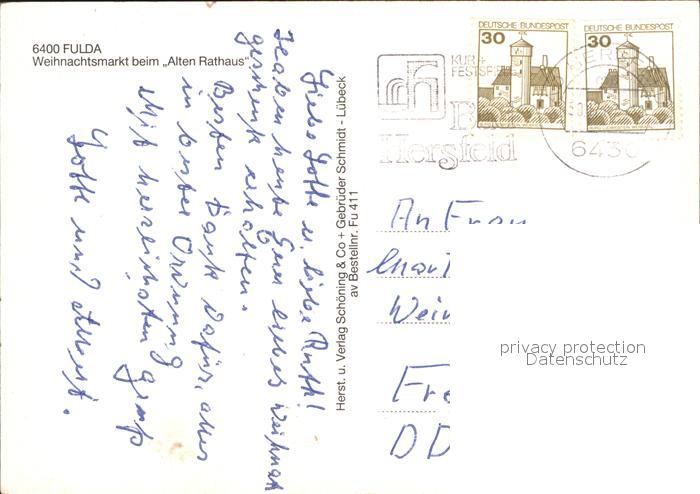 71924891 alte Postkarte FULDA Hessen Weihnachtsmarkt Altes Rathaus postalisch gelaufen Erhaltung siehe scans KatCode: 11110006631009