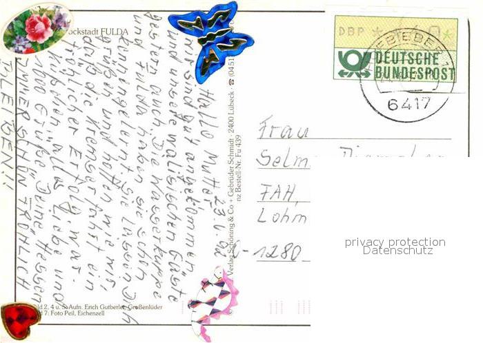 72917586 alte Postkarte Fulda Kirche Denkmal Dom Rathaus Fachwerkhaus Schloss postalisch gelaufen Erhaltung siehe scans [FriedD77] KatCode: 11110006631009