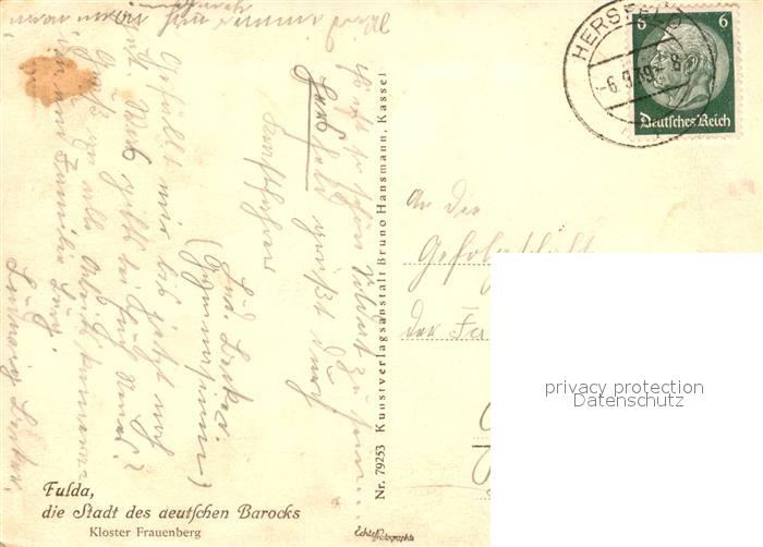 73562014 alte Postkarte Fulda Kloster Frauenberg postalisch gelaufen Erhaltung siehe scans [KathaD81] KatCode: 11110006631009