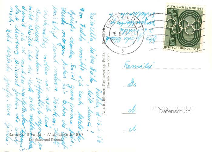 73609469 alte Postkarte Fulda Michaelskirche Landhaus und Rotunde postalisch gelaufen Erhaltung siehe scans [FriedD77] KatCode: 11110006631009