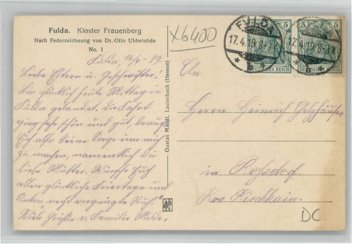 40692996 Fulda Nach Federzeichnung von Dr Otto Ubbelohde Kloster Frauenberg KatCode 11110006631009