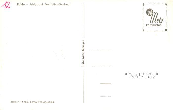 72974996 Fulda Schloss mit Bonifatius Denkmal Statue postalisch nicht gelaufen Erhaltung siehe scans [FriedD77] KatCode: 11110006631009