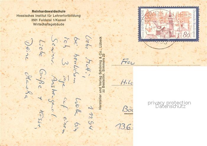 73655054 alte Postkarte Fuldatal Reinhardswaldschule Wirtschaftsgebaeude postalisch gelaufen Erhaltung siehe scans [WerneD78] KatCode: 11110006633009