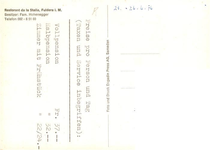 13884267 Fuldera Restorant da la Staila Gastraum postalisch nicht gelaufen Erhaltung siehe scans [FriedD77] KatCode: 11470100325138