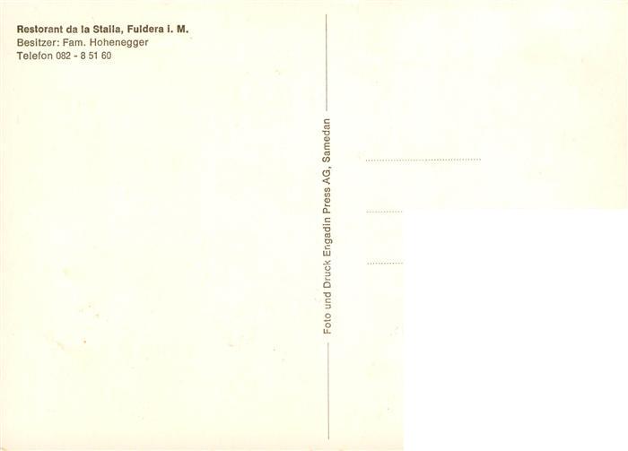 13891279 Fuldera Restorant de la Stalla postalisch nicht gelaufen Erhaltung siehe scans [WerneD78] KatCode: 11470100325138