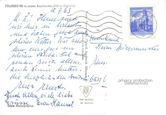 74047831 alte Postkarte Fulpmes Innsbruck Tirol AT Panorama postalisch gelaufen Erhaltung siehe scans [WerneD78] KatCode: 11390332070310