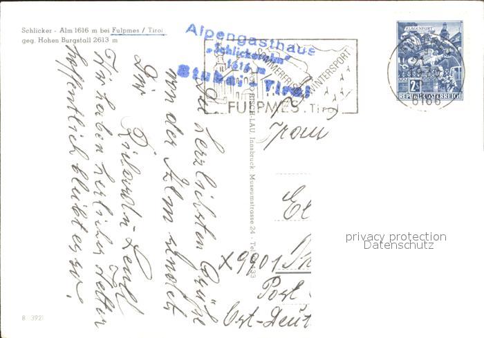 71866371 alte Postkarte Fulpmes Tirol Alpengasthaus Schlickeralm postalisch gelaufen Erhaltung siehe scans KatCode: 11390332070310