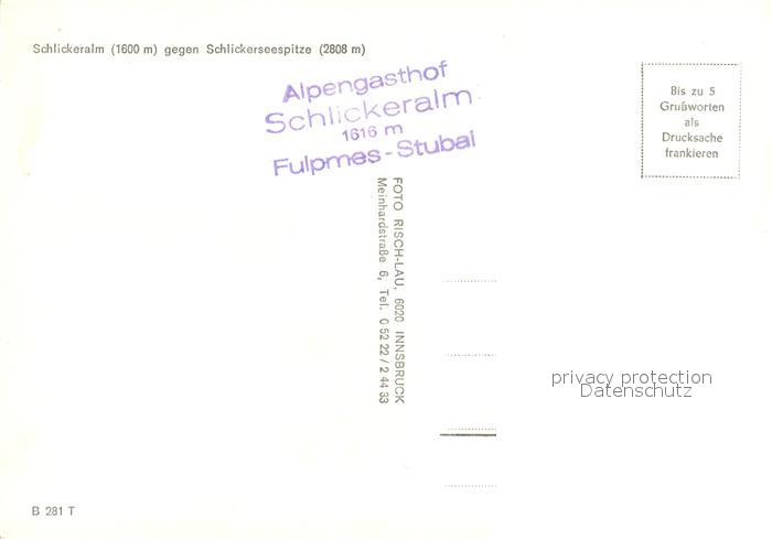 73244865 Fulpmes Tirol Alpengasthof Schlickeralm postalisch nicht gelaufen Erhaltung siehe scans [KathaD81] KatCode: 11390332070310