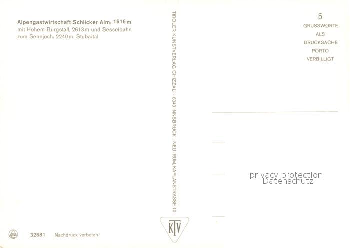13233135 Fulpmes Tirol Alpengastwirtschaft Schlicker Alm Hohe Burgstall postalisch nicht gelaufen Erhaltung siehe scans [NatalD47] KatCode: 11390332070310
