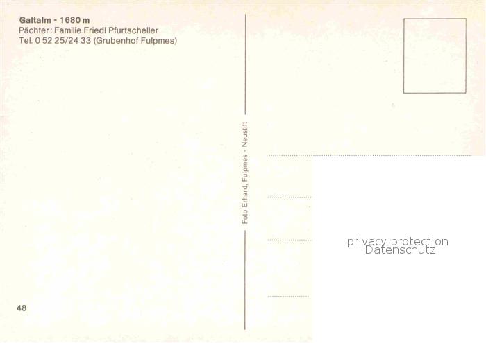 72841107 Fulpmes Tirol Galtalm postalisch nicht gelaufen Erhaltung siehe scans [AndreD76] KatCode: 11390332070310