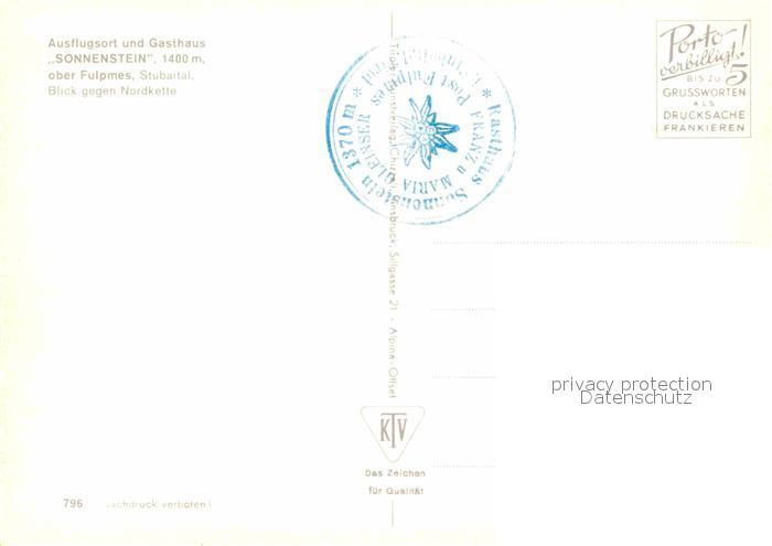 72812656 Fulpmes Tirol Gasthaus Sonnenstein Terrasse postalisch nicht gelaufen Erhaltung siehe scans [WerneD78] KatCode: 11390332070310