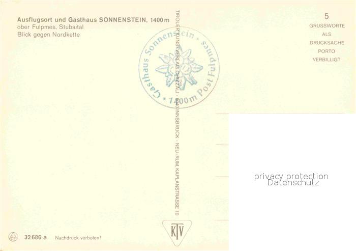 72906949 Fulpmes Tirol Gasthaus Sonnenstein postalisch nicht gelaufen Erhaltung siehe scans [LiesaD40] KatCode: 11390332070310