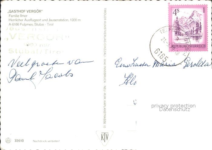 72499831 alte Postkarte Fulpmes Tirol Gasthof Vergoer postalisch gelaufen Erhaltung siehe scans KatCode: 11390332070310