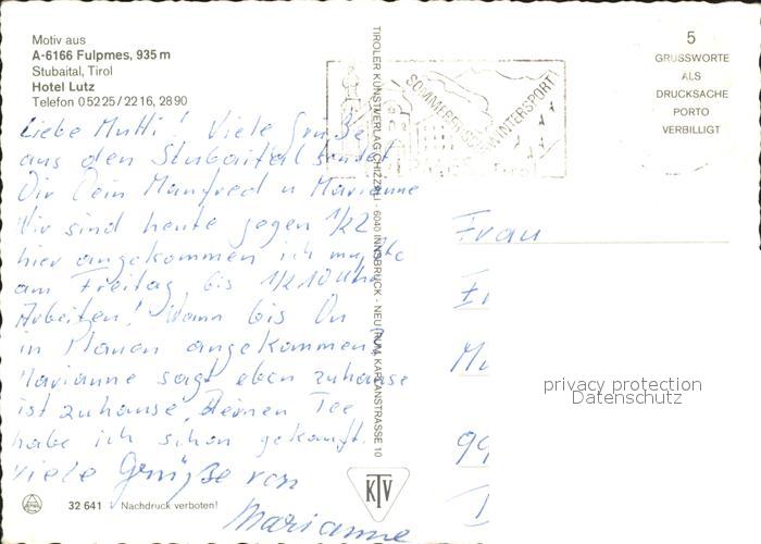 71866370 alte Postkarte Fulpmes Tirol Hotel Lutz postalisch gelaufen Erhaltung siehe scans KatCode: 11390332070310