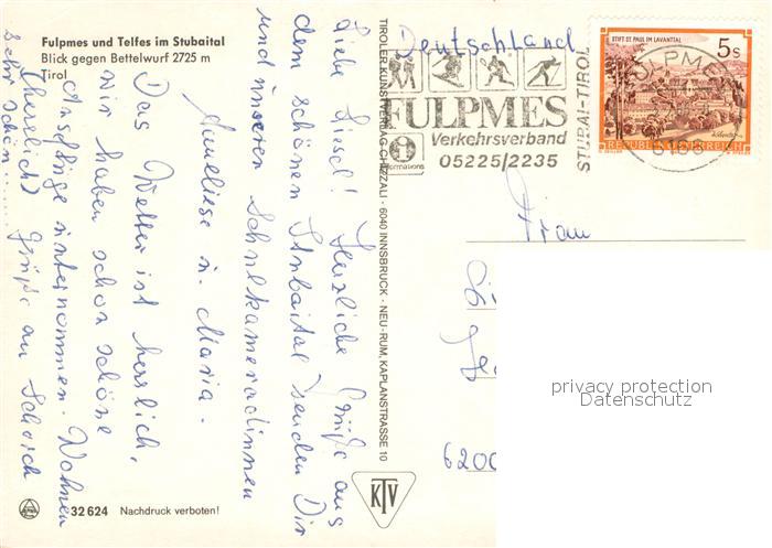 73626082 alte Postkarte Fulpmes Tirol Panorama postalisch gelaufen Erhaltung siehe scans [FriedD77] KatCode: 11390332070310