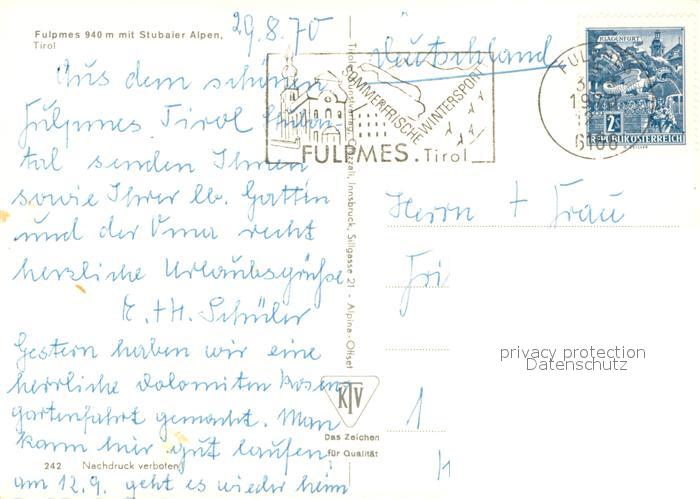 73629110 alte Postkarte Fulpmes Tirol Panorama mit Stubaier Alpen postalisch gelaufen Erhaltung siehe scans [WerneD78] KatCode: 11390332070310