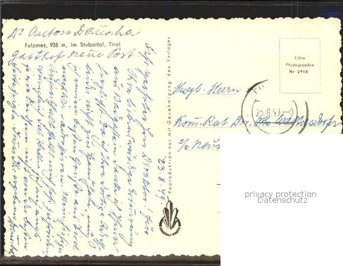 11897708 alte Postkarte Fulpmes Tirol Stubaital postalisch gelaufen Erhaltung siehe scans KatCode: 11390332070310