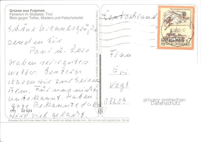 72517940 alte Postkarte Fulpmes Tirol Stubaital mit Telfes Mieders und Patscherkofel postalisch gelaufen Erhaltung siehe scans KatCode: 11390332070310