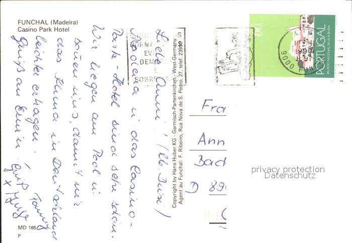 old postcard Funchal Casino Park Hotel Swimming Pool Faehre postalisch gelaufen Erhaltung siehe scans