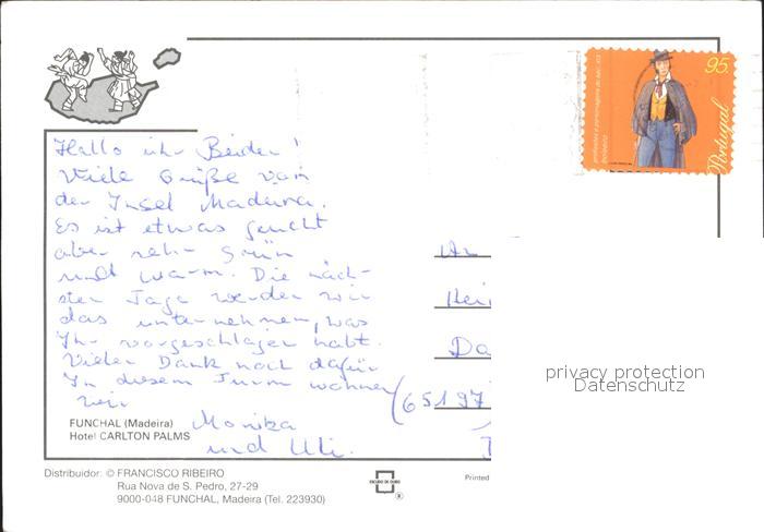 old postcard Funchal Hotel Carlton Palms Swimming Pool postalisch gelaufen Erhaltung siehe scans