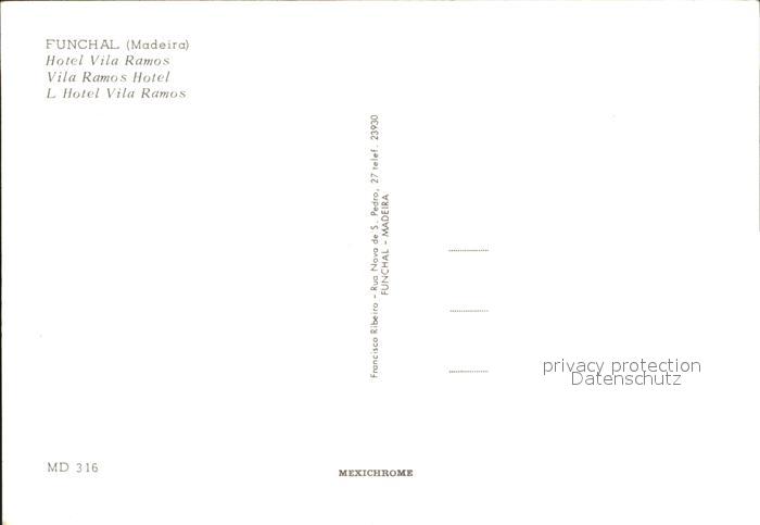 Funchal Hotel Vila Ramos postalisch nicht gelaufen Erhaltung siehe scans