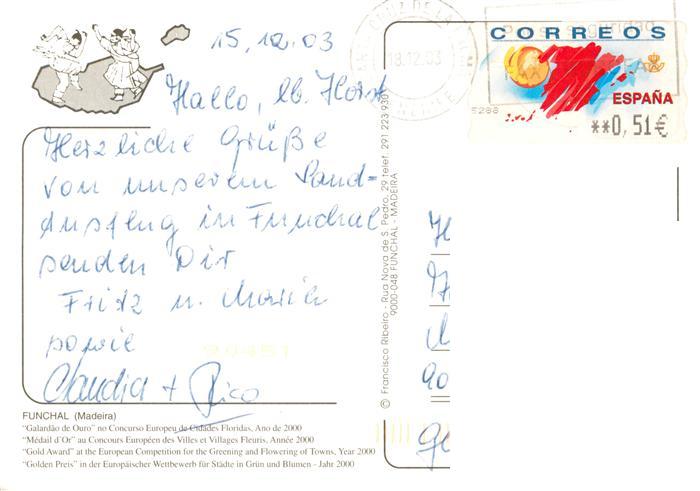 73899111 old postcard Funchal Madeira PT Fliegeraufnahme postalisch gelaufen Erhaltung siehe scans [FriedD77] KatCode: 11420