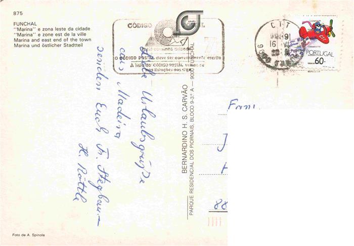 74142607 old postcard FUNCHAL Madeira PT Marina Hafen postalisch gelaufen Erhaltung siehe scans [IrynaD87] KatCode: 11420