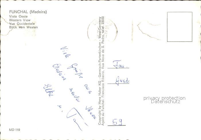 old postcard Funchal Panorama Kueste Blumen postalisch gelaufen Erhaltung siehe scans