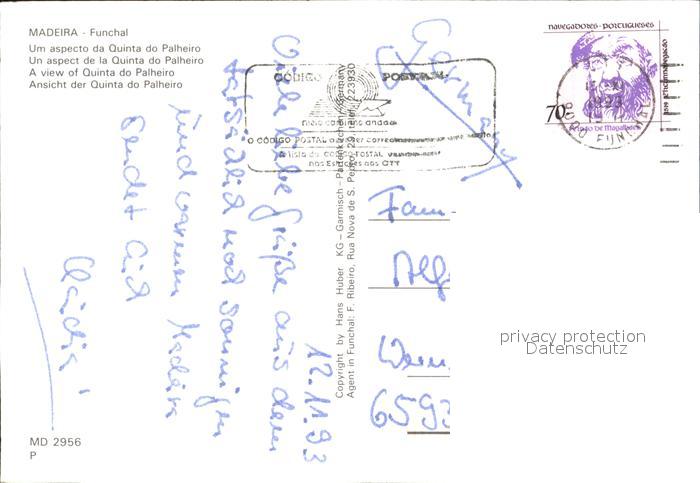 old postcard Funchal Quinta do Palheiro postalisch gelaufen Erhaltung siehe scans