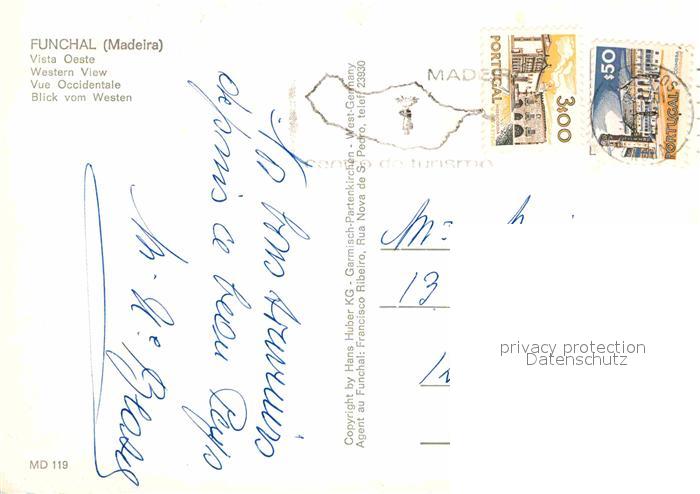 old postcard Funchal Vista oeste Panorama Kueste postalisch gelaufen Erhaltung siehe scans [FriedD77]