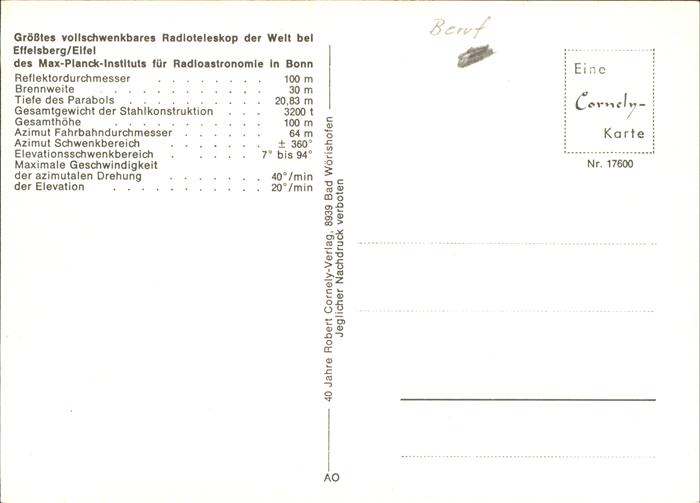 71380606 Funk Radioteleskop Effelsberg/Eifel KatCode 22060000007700
