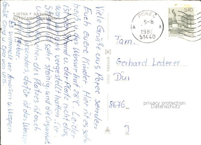 old postcard Funtana Istra Naturist Autocamp Fliegeraufnahme postalisch gelaufen