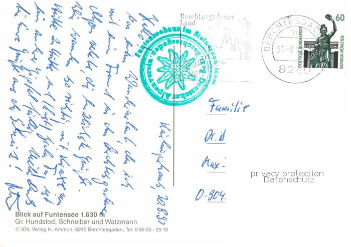 72616769 alte Postkarte Funtensee mit Gr Hundstod Schneiber und Watzmann postalisch gelaufen Erhaltung siehe scans [WerneD78] KatCode: 11110009172116