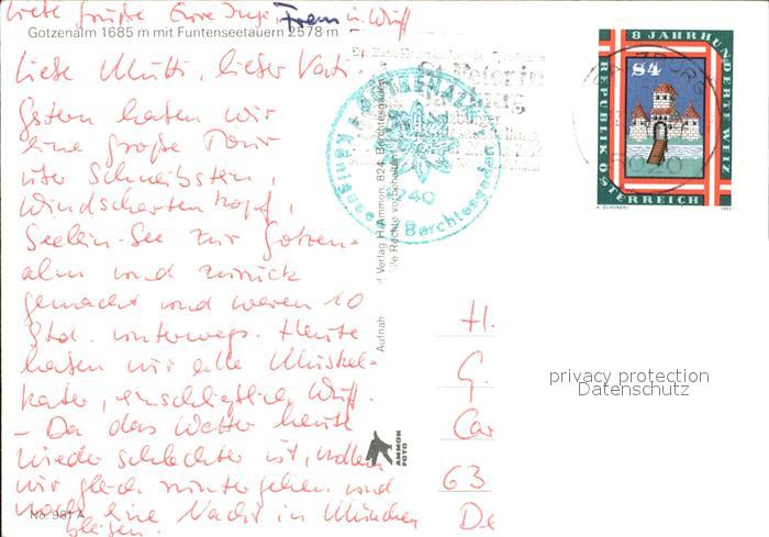 72393889 alte Postkarte Funtensee Tauern Gotzenalm postalisch gelaufen Erhaltung siehe scans KatCode: 11110009172116