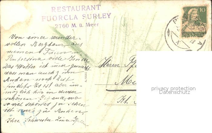 11739135 alte Postkarte Fuorcla Surley Piz Corvatsch postalisch gelaufen Erhaltung siehe scans KatCode: 11470360105616