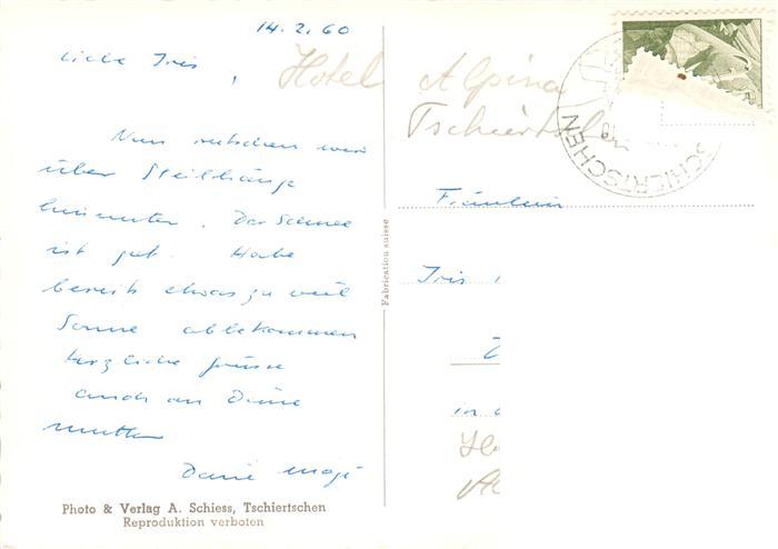 13871326 Furklis Tschiertschen GR Panorama postalisch gelaufen Erhaltung siehe scans [WerneD78] alte Postkarte Wern Katcode 11470100345334