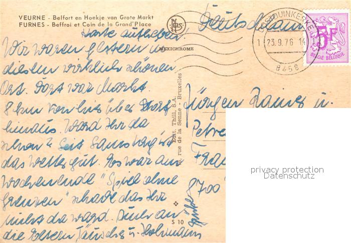 72971372 carte postale Furnes Veurne West-Vlaanderen Belgie Beffroi et Coin de la Grande Place postalisch gelaufen Erhaltung siehe scans [FriedD77] KatCode: 11070038002664