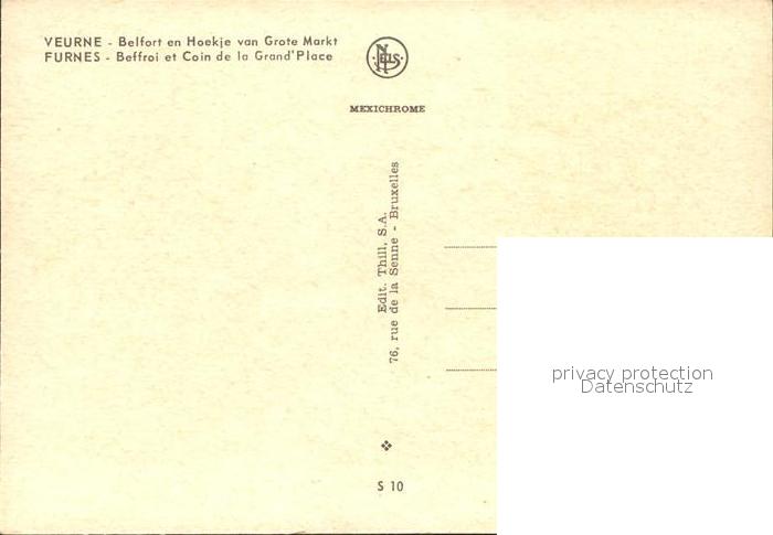 72284963 Furnes Veurne West-Vlaanderen Belgie Belfort Hoekje Grote Markt postalisch nicht gelaufen Erhaltung siehe scans KatCode: 11070038002664