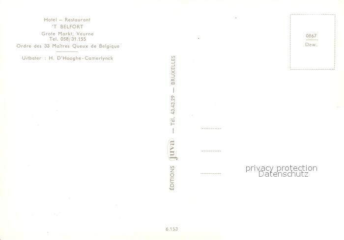 73125789 Furnes Veurne West-Vlaanderen Belgie Hotel Restaurant Belfort postalisch nicht gelaufen Erhaltung siehe scans [KathaD81] KatCode: 11070038002664