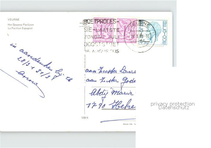 72472608 carte postale Furnes Veurne West-Vlaanderen Belgie Pavillon Espagnol postalisch gelaufen Erhaltung siehe scans KatCode: 11070038002664