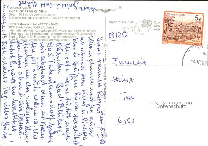 72411579 alte Postkarte Furth Goettweig Benediktinerstift Fliegeraufnahme postalisch gelaufen Erhaltung siehe scans KatCode: 11390124031309
