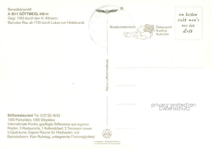 73162263 Furth Goettweig Benediktinerstift Goettweig Wachau Fliegeraufnahme postalisch nicht gelaufen Erhaltung siehe scans [FriedD77] KatCode: 11390124031309